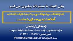 دفتر انتقادات، پیشنهادات و رسیدگی به شکایات دانشکده آماده شنیدن صدای شماست بیان کنید، ما مسئولانه پیگیری می‌کنیم دفتر انتقادات، پیشنهادات و رسیدگی به شکایات دانشکده آماده شنیدن صدای شماست --> به اطلاع اساتید، کارکنان و د انشجویان میرساند: واحد رسیدگی...