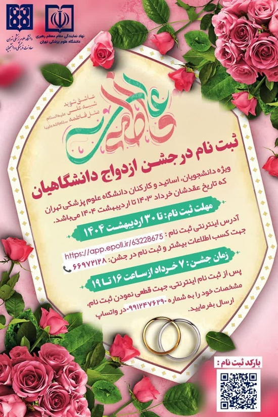 به استحضار می رساند در راستای ایجاد شور و نشاط زندگی، اهمیّت امر مقدس ازدواج و نیز برگزاری ازدواج آسان، به همت نهاد نمایندگی مقام معظم رهبری و معاونت فرهنگی و دانشجویی، جشن ازدواج دانشگاهیان در روز چهارشنبه مورخ 1404/03/07 برگزار می گردد؛