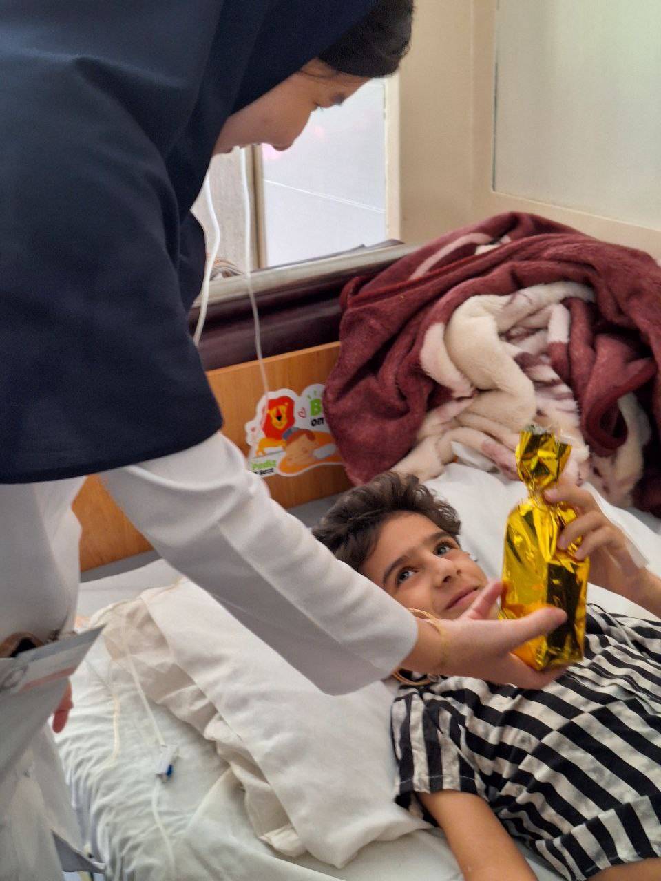 در ادامه این برنامه، با تهیه کیک و شیرینی، فضای دلنشین و خاطرهانگیزی برای کودکان، خانوادهها، پرستاران و دانشجویان رقم خورد که جلوهای از همدلی، مسئولیتپذیری و نشاط جمعی را به نمایش گذاشت.